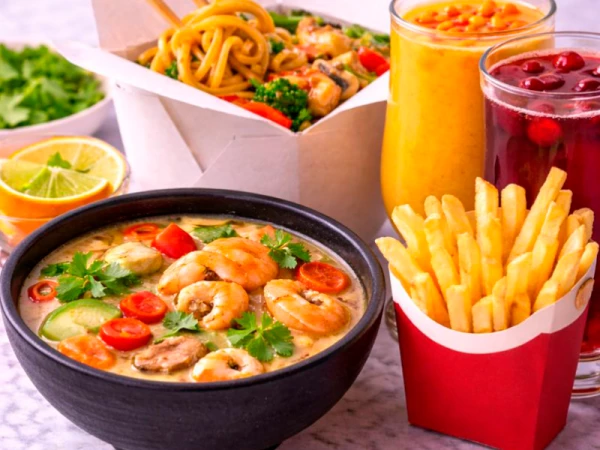 Вок №21 с беконом, Онигири лайк, Морс на выбор